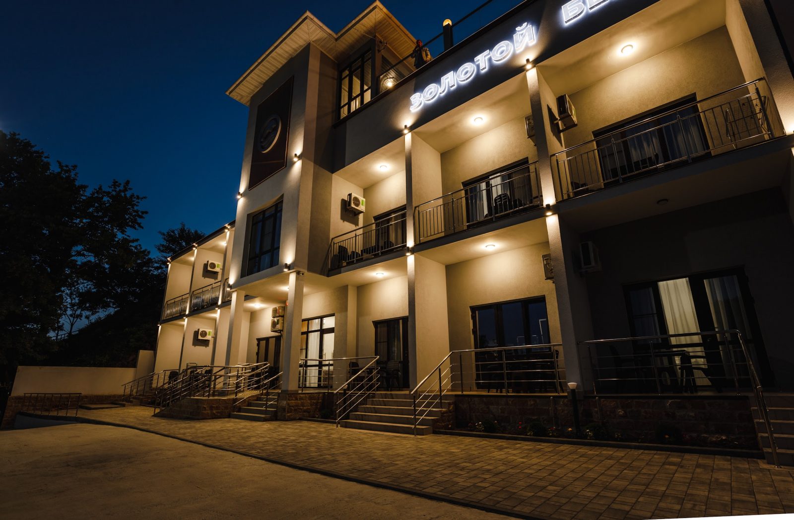 Апарт-отель «Золотой Берег» находится в курортном поселке Лермонтово. Поблизости расположены рестораны и кафе с аппетитными блюдами. В шаговой доступности работают столовые, закусочные. Расстояние до аэропорта в городе Геленджик составляет 89 километров.