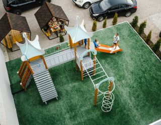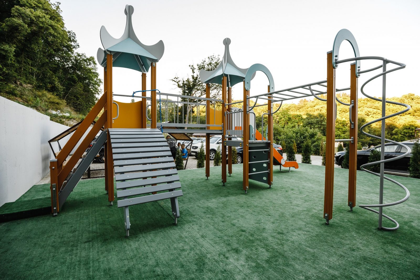 На территории апарт-отеля есть зона барбекю, чтобы гости могли приготовить любимые блюда на открытом огне. Также оборудован роскошный бассейн с подогревом на крыше, откуда открывается потрясающий вид на Кавказские горы. Имеется детская площадка с мягким покрытием. Отель расположен всего в 100 метрах от пляжа с бархатистым песком, прозрачной и теплой водой. На берегу созданы все условия для эмоционального и физического восстановления. Для малышей на пляже предусмотрены надувные горки, игровые комплексы и водные аттракционы.