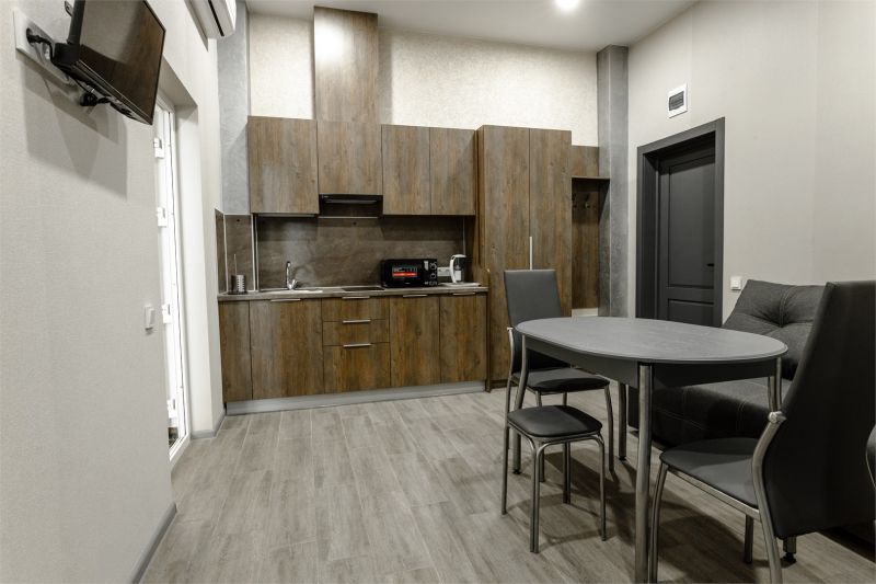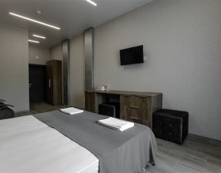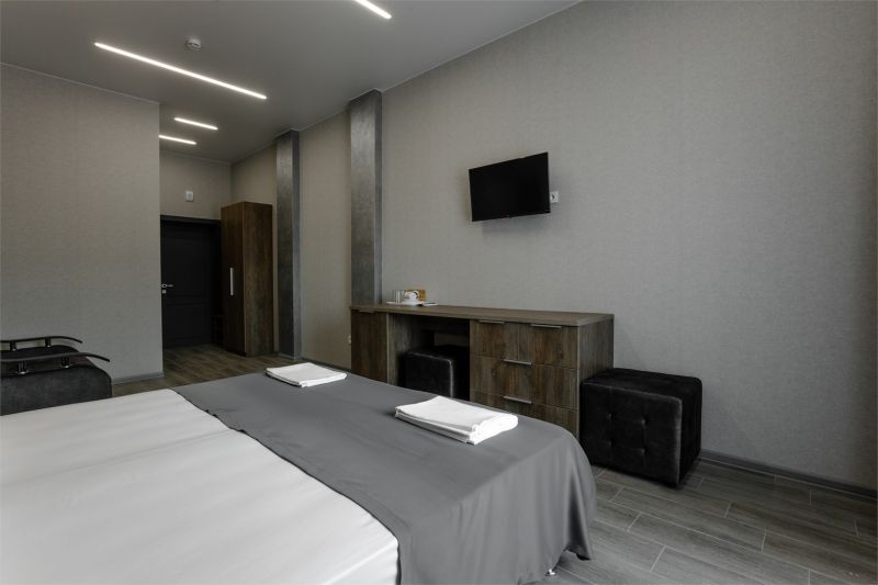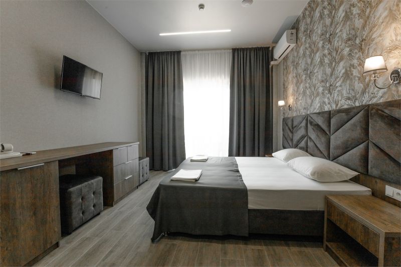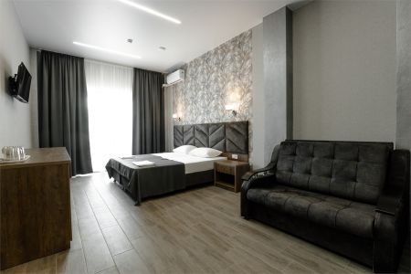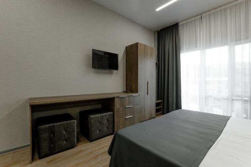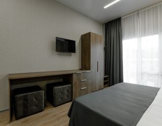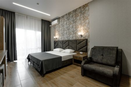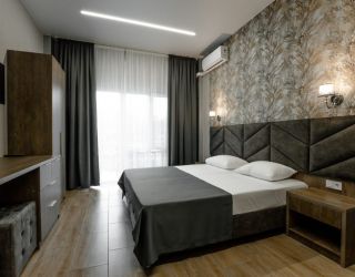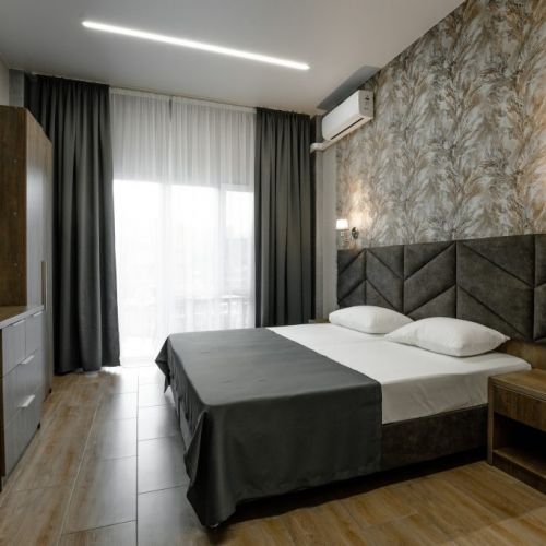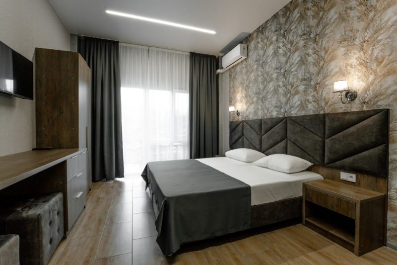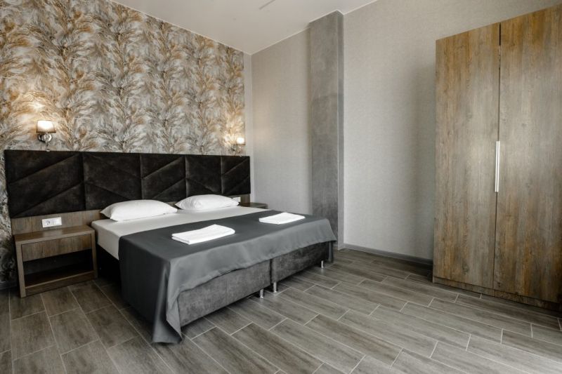 Для проживания гостям предлагаются 2-х и 3-х местные номера, а также апартаменты, вместимостью до 4-х человек. Дизайн комнат выполнен в современном стиле. Установлены удобные кровати для сна, есть телевизор со спутниковыми каналами, кондиционер, мини-холодильник и электрический чайник. На балконе установлена мебель. Санузел индивидуальный для каждого номера, оснащен душем. Отдыхающим предоставляются туалетные принадлежности и полотенца. В апартаментах имеется кухня с набором необходимой бытовой техники, посудой и обеденной зоной.